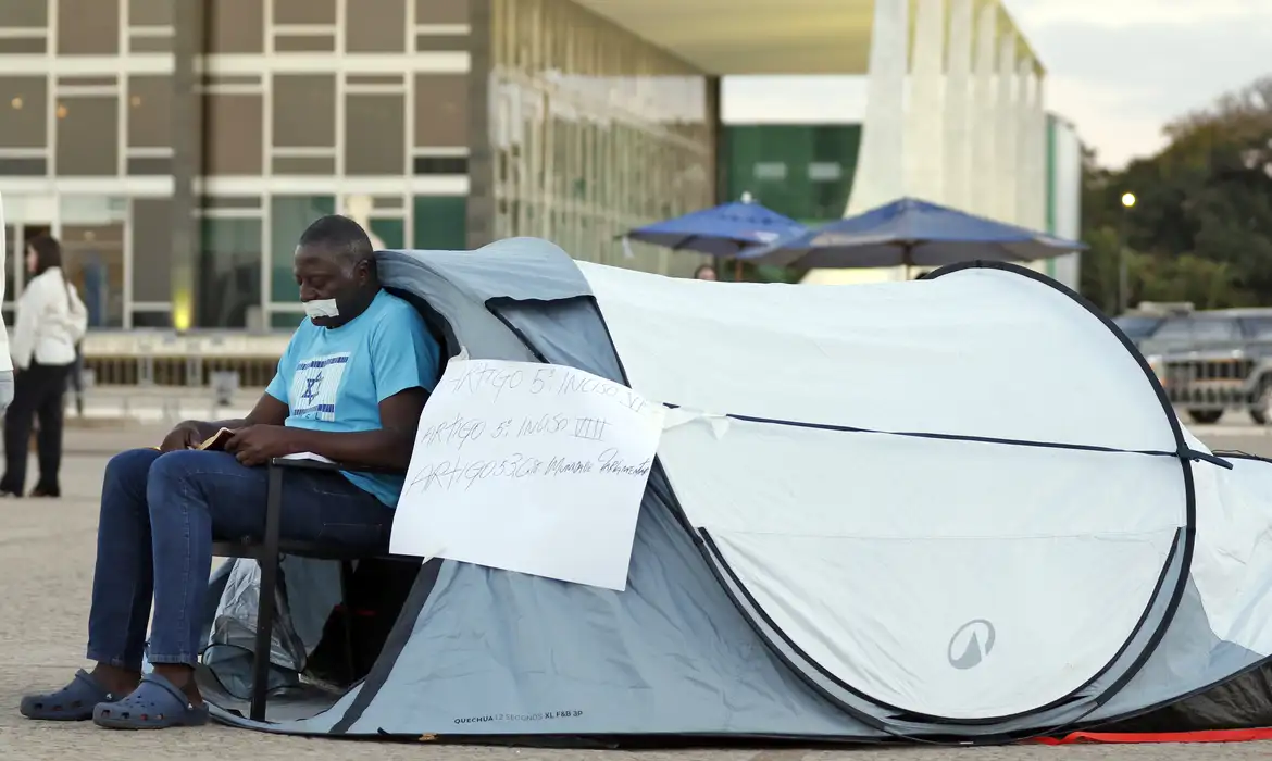 Deputado Hélio Lopes faz acampamento com uma barraca em protesto na Praça dos Três Poderes em frente ao STF – Bruno Peres/Agência Brasil