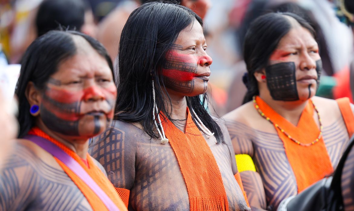 - Em marcha, indígenas revelam orgulho de erguer faixas e bandeiras.