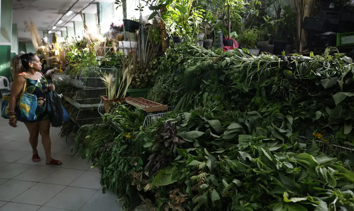 Comércio de ervas para banhos energéticos e espirituais no Mercadão de Madureira. Foto: Fernando Frazão/Agência Brasil